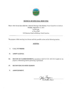 Special Meeting Notice 9.15.2025
